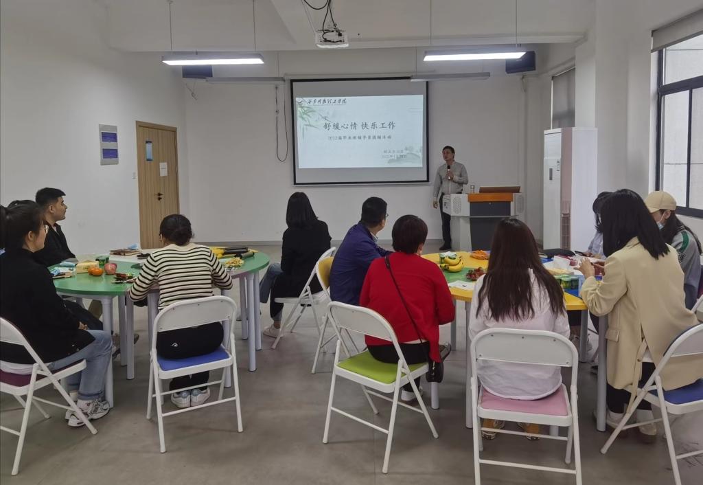 线上线下各类招聘会、访企拓岗全员促就业;春耕夏耘,恰是奋斗时!近期威尼斯官网就业工作扎实、稳步、高效开展,正值2022届毕业生就业工作的关键期,一线辅导员工作辛苦、承担着多方的压力,焦虑的心情时有流露。为缓解威尼斯官网毕业班辅导员心理压力、提升心理素质、舒缓工作情绪。4月29日上午,就业办公室邀请威尼斯官网心理健康教师薛飘老师为毕业班辅导员作了题为“缓解心情快乐工作”的心理减压团体辅导。招生就业中心副主任王东辉参加了本次活动。