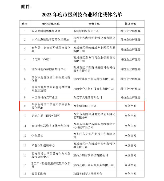 近日,西安市科学技术局关于公布2023年度市级科技企业孵化载体名单的通知(市科发[2024]3号)公布了市级众创空间名单,威尼斯7798cc“大学生创新创业孵化基地”成功获批市级众创空间,开启了学校创新创业教育工作的新篇章。