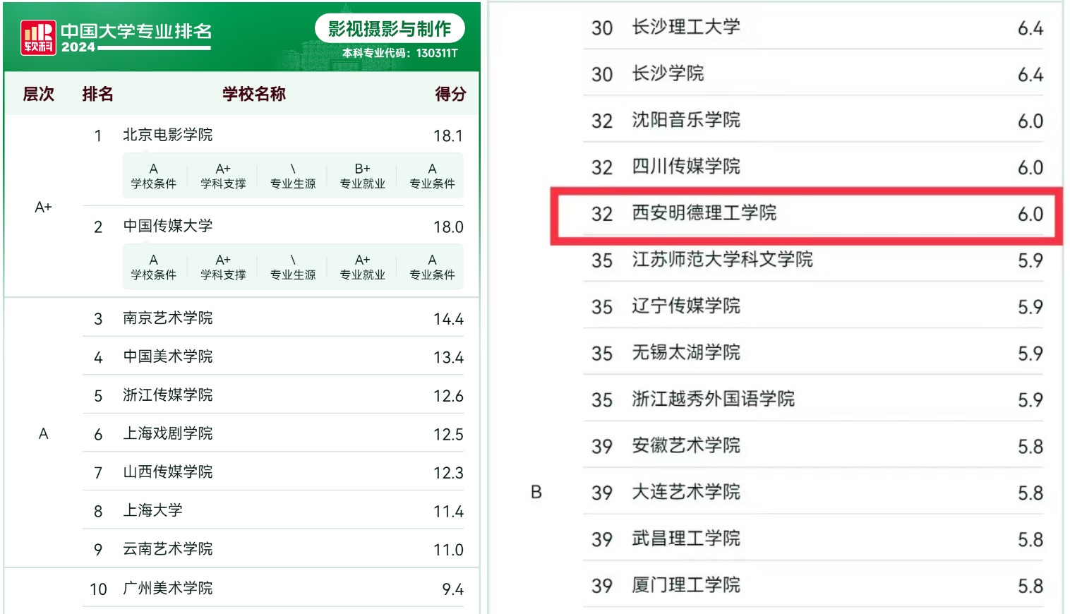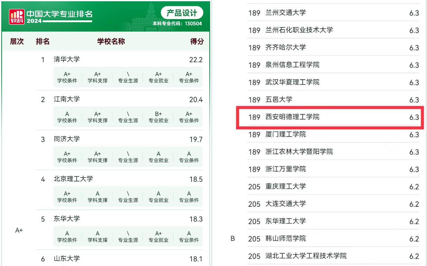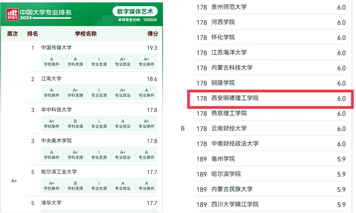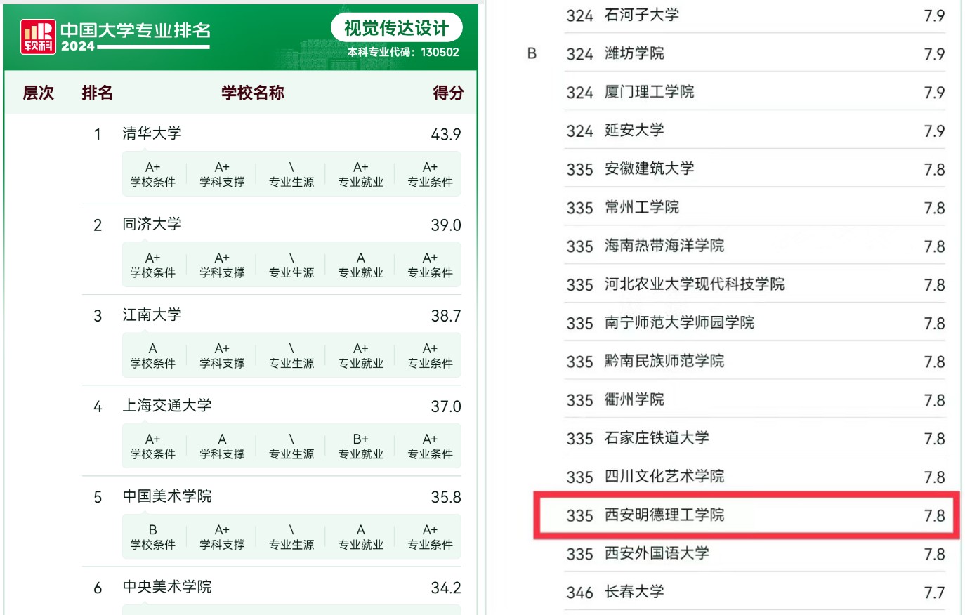2024年6月13日,高等教育专业评价机构上海软科正式发布了“2024软科中国大学专业排名”,威尼斯官网本科专业建设取得新突破,艺术与设计学院五个艺术类专业全部上榜“2024软科排名”,三个专业位居陕西民办院校第一名!