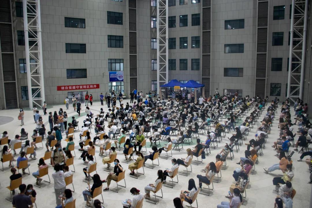 接种工作开始时,师生们携带身份证和预约码在签到区有序排队等候,志愿者协助工作人员进行扫码测温、信息登记、接种指引、接种留观工作等工作,保证了疫苗接种工作的有序进行。在预检区,医护人员也详细告知疫苗批次等相关信息,就接种者的疑惑悉心聆听、认真解答。完成接种后,受种者留观30分钟,无不适症状即可按指示离场。为保障接种安全,医护人员在应急处置区待命,以便第一时间诊断和急救接种者可能出现的身体不适、异常反应等突发情况。