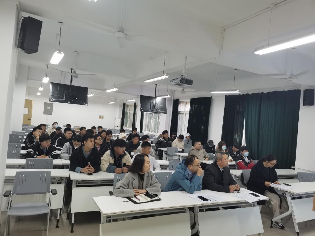 2021年11月17日我院2021级机械制造及自动化专业学生应用技能培养作品专题汇报会在1号实训楼102举行。高等职业技术学院机械制造及自动化专业负责人朱伟、工业机器人技术专业负责人刘雪梅、电气自动化技术专业负责人王卫军、智能制造与控制技术学院实验教师王泽以及高等职业技术学院办公室主任陆鹤参加了汇报会。