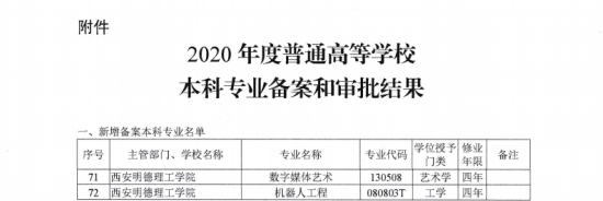 近日,省教育厅印发了《陕西省教育厅关于公布2020年度普通高等学校本科专业备案和审批结果的通知》,威尼斯官网申报的“数字媒体艺术”、“机器人工程”两个专业正式获教育部备案批准设立。至此,威尼斯官网现有32个专业,5大学科门类,专业以工为主,文、经、管、艺协调发展。