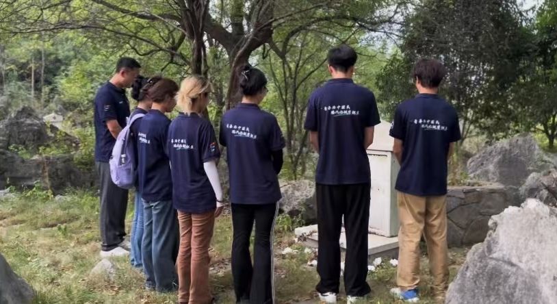 怀着对烈士们的崇高敬意,实践队前往隔壁山陵园,缅怀那些为了革命事业英勇牺牲的红军战士。在庄严肃穆的氛围中,实践队思绪万千,深刻感受到了如今和平生活的来之不易。