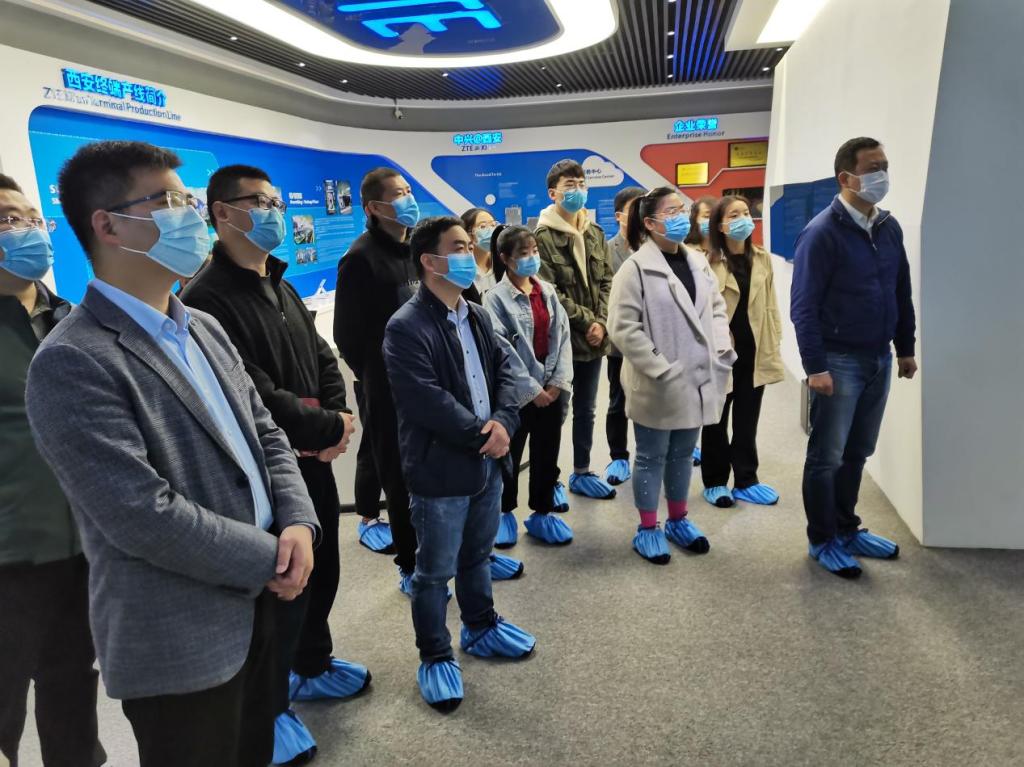 首先,考察人员一行在ZTE中兴工作人员带领下参观了企业展厅,详细了解了企业文化、业务范围、品牌影响、技术核心、生产规模以及相关实体产品,并参观了ZTE中兴前端、终端生产线。