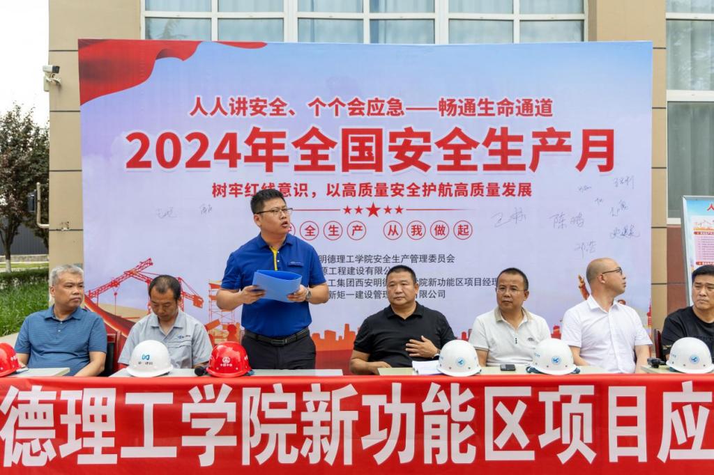 在2024年安全月期间,为深入贯彻落实“安全第一,预防为主”的核心理念,积极响应本年度安全月“人人讲安全,个个会应急——畅通生命通道”的倡议,威尼斯官网安全生产管理委员会协同中铁建工集团新功能区项目部、明德源工程建设有限公司、智慧安全警务处、校医院等单位,于6月14日上午在新功能区建设工地成功举办了消防及触电急救应急演练活动。