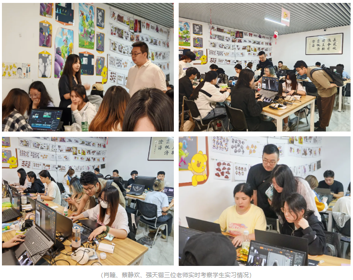 数字媒体艺术专业负责人肖瞳、实习指导教师蔡静欢、强天锴,全程跟进学生的实习过程,积极解决实地考察学生学习和生活中的问题,与企业共同指定实习责任制度和考勤制度。实习中期还组织了企业、学校、学生三方的沟通会,针对学习前期存在的问题及时进行面对面的沟通,切实做到一切以学生为中心,保证了实习的顺利进行。