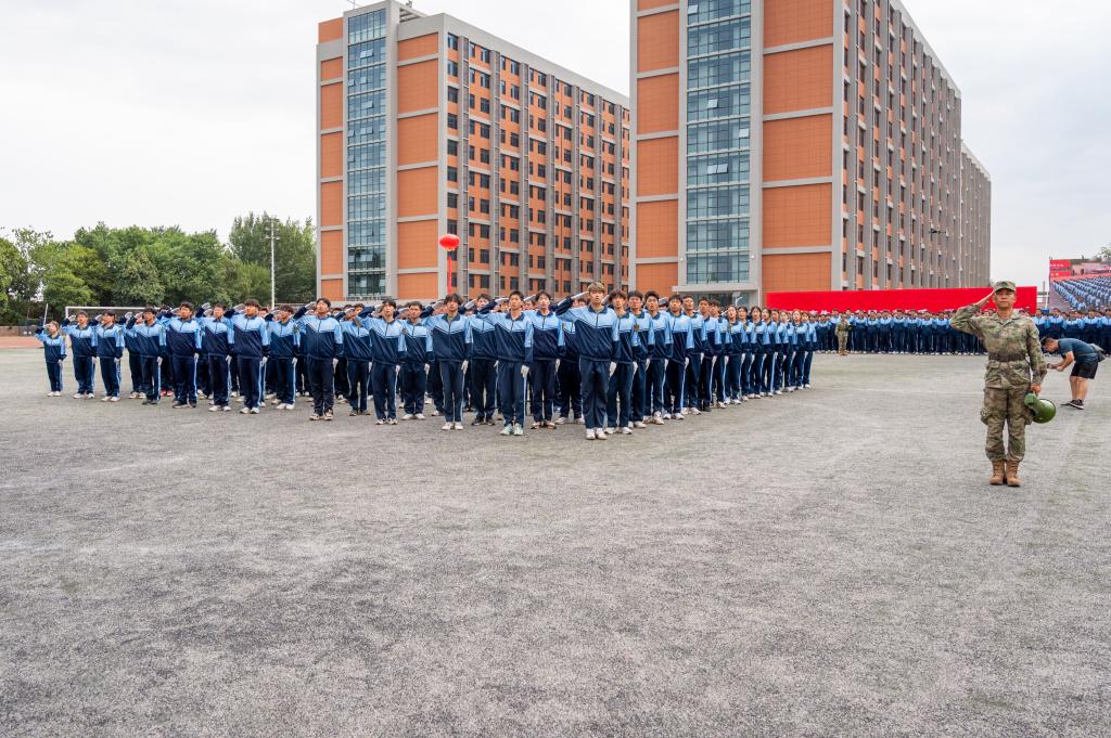 9月21日上午,学校2024级学生开学典礼暨军训总结表彰大会在学校运动场隆重举行。陕西金叶科教集团副总裁秦忠,董事局秘书闫凯,明德源教育集团助理总裁兼常务副总裁、学校副董事长张琳,学校校长王志刚,党委书记马川鑫,长安区人民武装部部长张引良,明德源教育集团财务总监田雪,学校副校长朱延波、陈鹏,财务总监马晓军,学校军训团团长张军闯出席大会,明德源教育集团、学校各学院、职能部门、教辅单位领导,全体军政干部、2024级全体学生、家长代表参加大会。会议由学校党委副书记、副校长、军训团政委刘星主持。