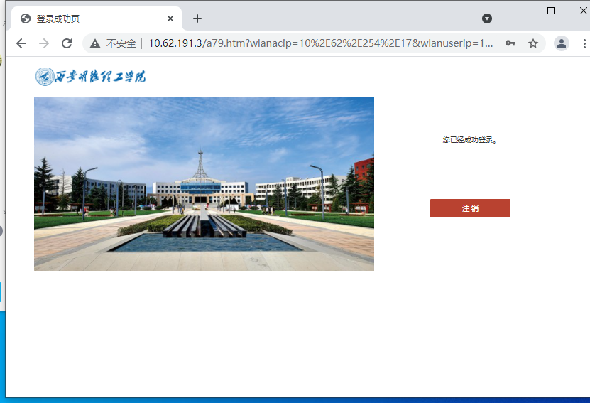 3.在登录页面输入正确的账号和密码登录。登录认证成功会显示【您已成功登录】,直接关闭浏览器,即可正常使用无线网络。