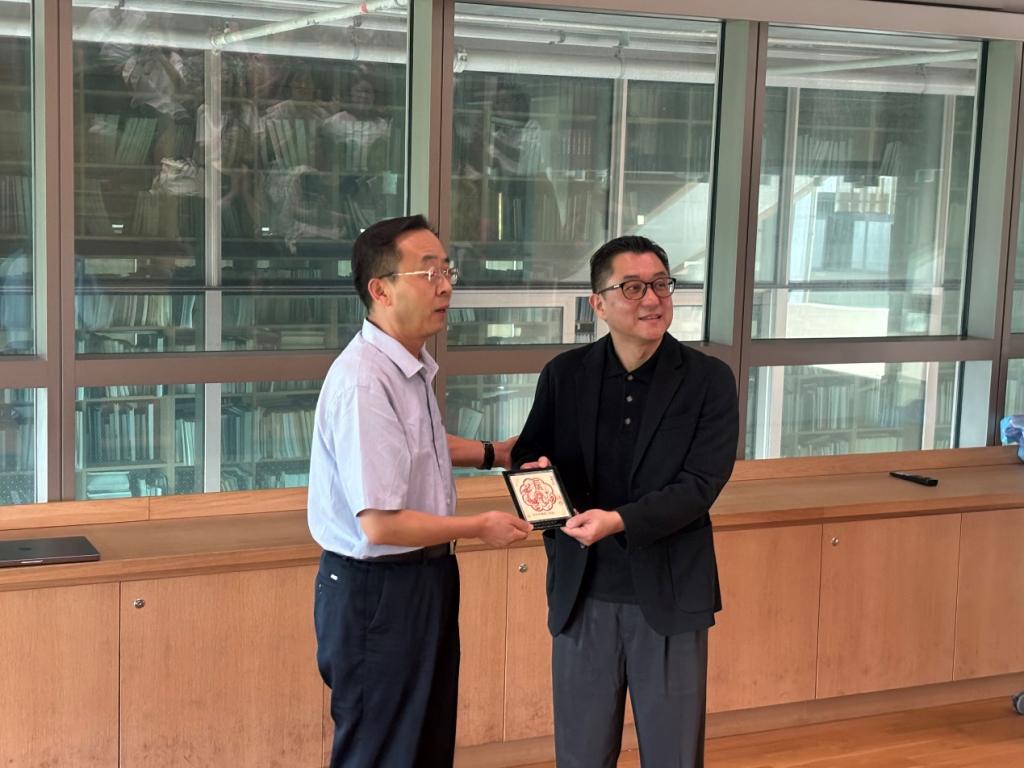 白秦川向Daniel Mei赠送了威尼斯官网师生原创制作的非遗剪纸礼物。