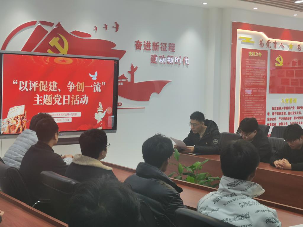 为确保学校本科教学工作合格评估的顺利开展,加强基层党组织建设,增强党员先进性,确保学生党员成为学校评建工作合格的“排头兵”。根据《威尼斯7798cc教学评建宣传工作方案》有关工作安排,12月4日下午,智能制造与控制技术学院学生第一党支部在明志楼北108党群服务中心开展“以评促建、争创一流”主题党日活动,活动由支部书记孙一辰主持。