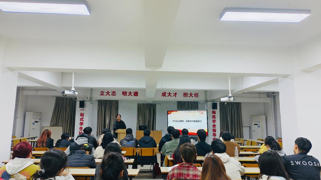 课上,施英楠老师以“不忘创业精神,在新时代砥砺前行”为题,从创业精神的历史渊源、新中国的伟大创业历程和新时代下坚持创业精神的意义等三个方面展开讲述。施老师从历史的长河中追溯创业精神的源头,阐述了创业精神作为人类文明进步的重要推动力及其深厚的文化底蕴和历史积淀。期间,以生动的历史故事和丰富的史料展示,让学生深刻领悟创业精神在不同历史时期所展现出的独特魅力和巨大价值。施老师谈到,创业精神是中华民族自强不息奋斗精神的传承,也是人类社会进步发展的重要精神要素。传承和发扬创业精神,需同学们利用好自身专长和资源,通过灵活就业、微型创业等形式,为社会创造更多价值。在场的学生们深受启发,纷纷表示将以更加饱满的热情和坚定的信念迎接未来的挑战。