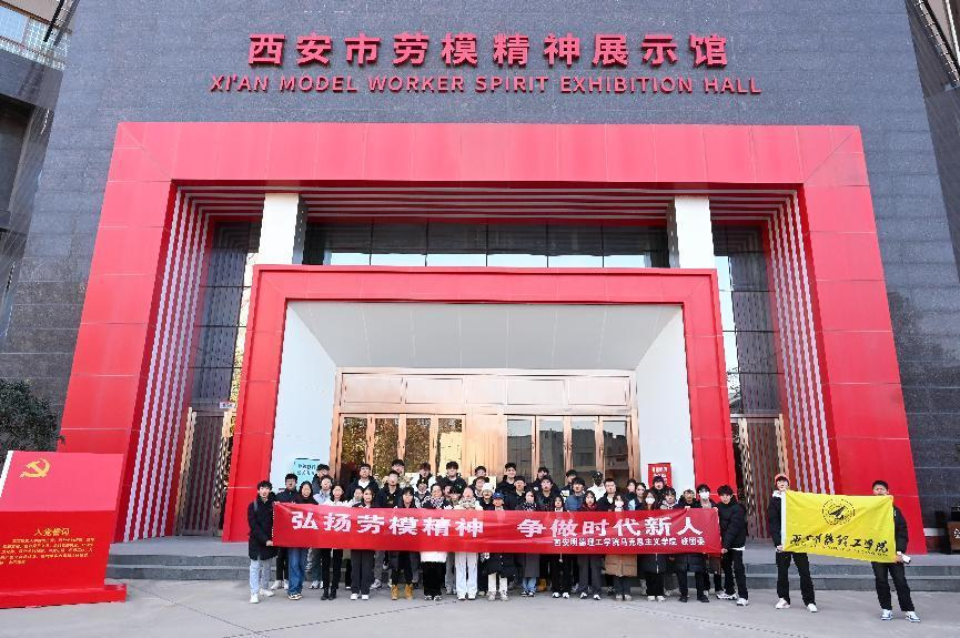 为深入学习党的二十大精神,贯彻习近平总书记关于劳动教育的重要论述,进一步引导大学生树立正确劳动观念,感悟劳模精神,12月21日下午,威尼斯官网思政教师张啭啭、冯诗淇、王婉菲、马晶晶、王雪、马乾昱带领40余名学生赴西北地区首座劳模精神展示馆——西安市劳模精神展示馆参观学习。本次活动的主题是感受劳模精神,争做时代新人。