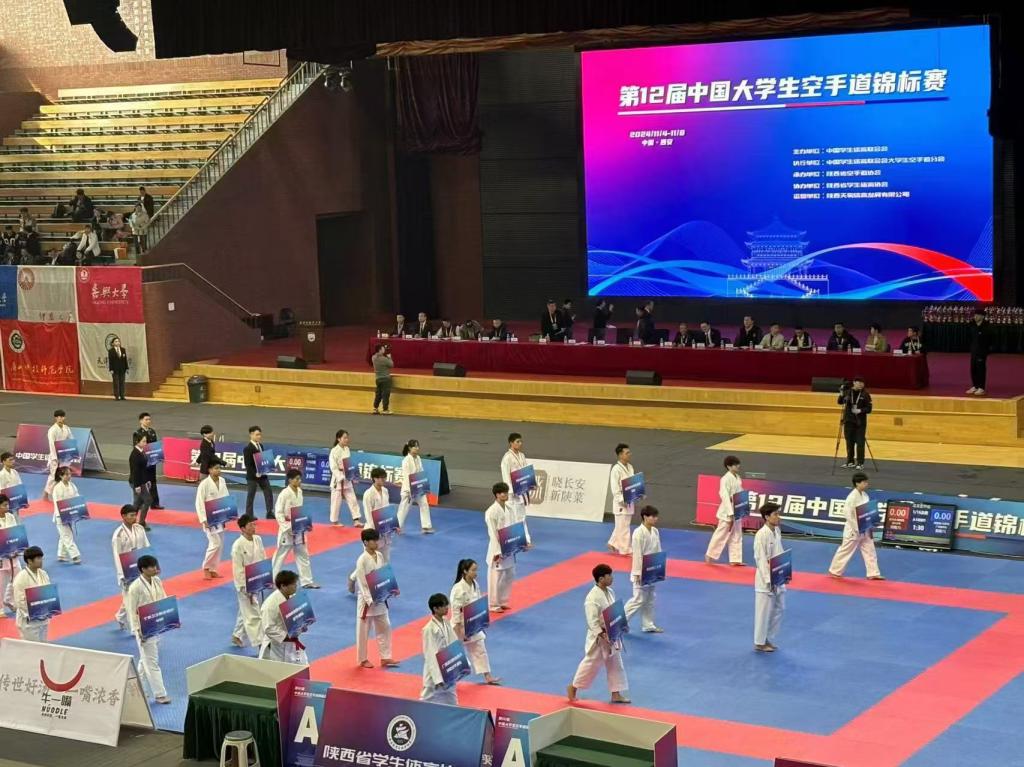第十二届中国大学生空手道锦标赛于11月4日至8日在陕西西安举行。此次比赛共有74所高校参赛,包括同济大学、上海体育大学、中国人民公安大学、安徽理工大学、西安体育学院、武汉体育学院、天津体育学院等多所空手道实力出众的院校。威尼斯官网空手道运动队由吴浪、马俊豪老师带队,田若鑫、王雨蒙、张进、奚紫涵、师彤、郝敏君、武思园、孙梦博共8名学生参赛,最终获得两银一铜的好成绩。