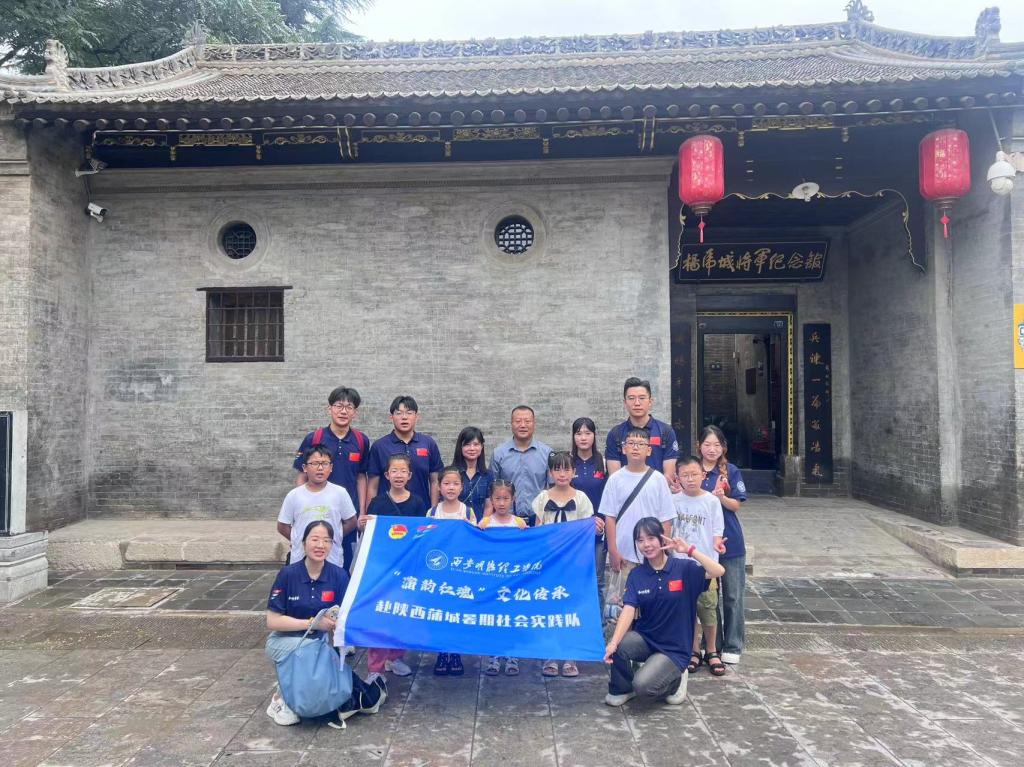 7月30日,威尼斯7798cc“蒲韵红魂”文化传承实践队携手渭南市蒲城县彭村留守儿童共赴文化之旅:探访杨虎城故居,缅怀先烈,学习红色革命精神;拜访吹糖人非遗传承人,亲身体验传统手工艺的魅力,共同为非遗文化的传承与发展贡献力量。